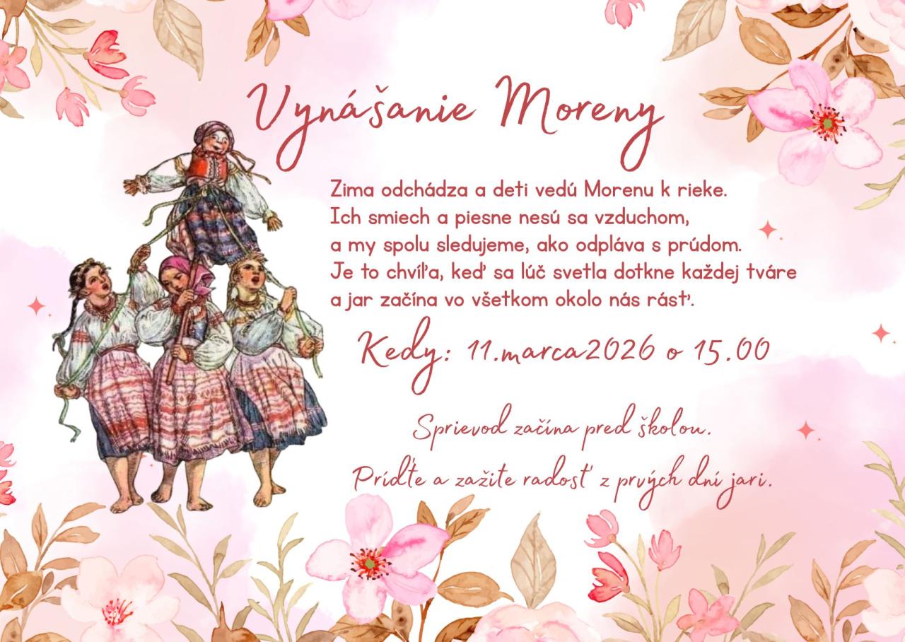 So zmenou ročných období prichádza aj oslava príchodu jari. Deti vedú Morenu k rieke, pričom ich smiech a spev sa rozliehajú vzduchom. Tento moment je sprevádzaný lúčmi svetla, ktoré sa dotýkajú tvárí všetkých prítomných. S touto tradíciou sa spája radosť a nádej, že jar prinesie novú energiu a život do okolia. Oslavujme spoločne príchod jari a všetko, čo s ňou súvisí.